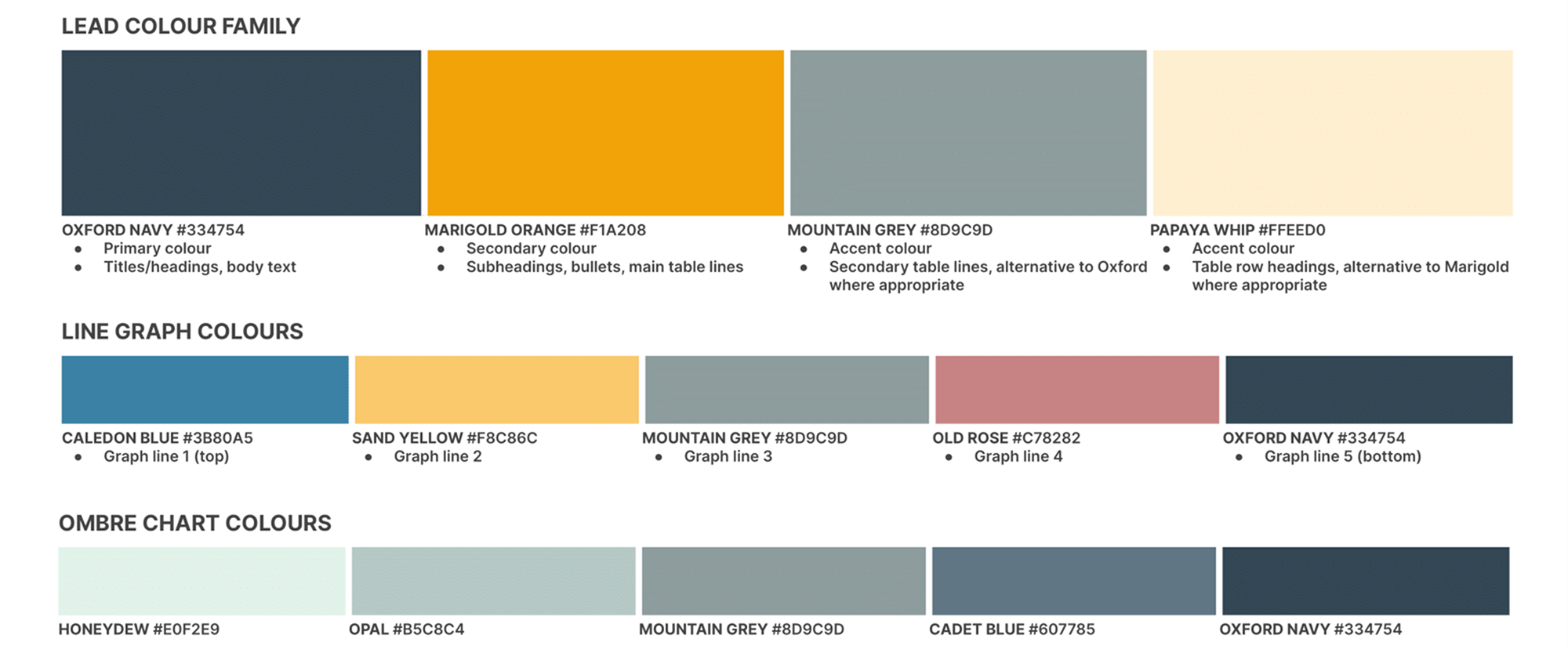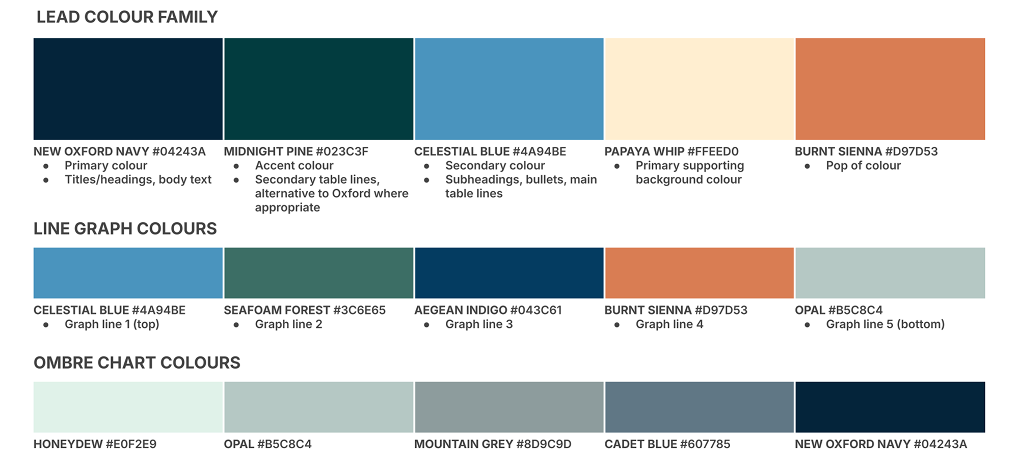- Colour Palette: A harmonious blend of calm and confidence that feels natural, grounded, and timeless with Sky, Navy, Oat, Leaf, and Slate.